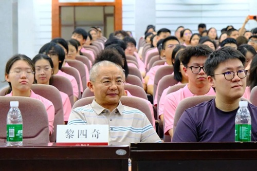 在报告厅隆重举行2025级本科新生迎新大会。院长黎四奇、党委书记李劲松、院党委副书记兼纪委书记胡琼、副院长蒋海松等女性自慰