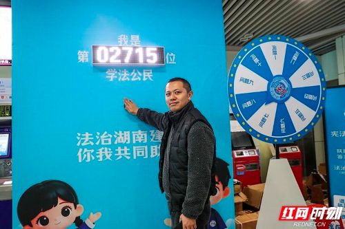 地铁站参观全省“八五”普法及“谁执法谁普法”工作成果展,乘车体验宪法主题地铁专列。