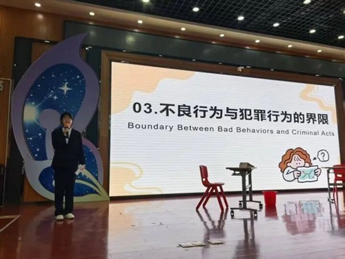 的学生帮助了小学生树立正确法律观念,规范自身行为。使他们能在价值观形成的关键期,及早树立规则意识与法律底线,学会识别风险、保护自己,避免因无知或冲动误入歧途。对学校和社会,则能营造尊法学法的校园氛围,从源头减少不良行为,降低犯罪隐患,促进家庭、学校、社会协同共育。这不仅是保护未成年人的关键举措,更是筑牢社会未来安全防线的基石,实现了对个体成长的守护与社会长远安宁的共赢。