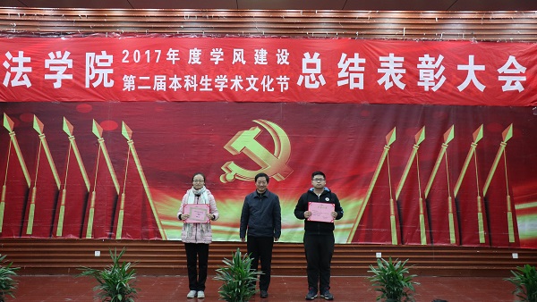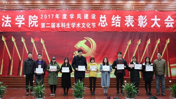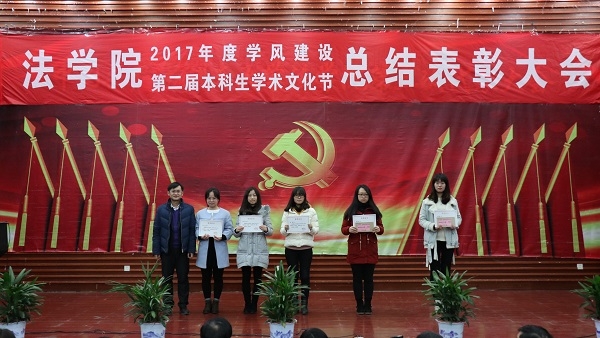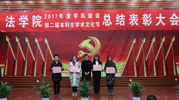 第二届学风建设评比先进班级,法学1502班、行管1501班、法学1603班、法学1604班四个班级荣获2017年度“学风建设先进班级”,行管1501班、法学1603班分别上台作了典型发言,介绍了班级在推动班级学风建设方面取得的突出成果和举措。晚9时20分许,总结表彰大会圆满结束。