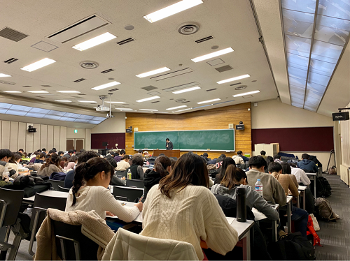下午,同学们前往北海道大学法学部旁听法学课程。一部分同学旁听了《民法中债务的转移和抵消》课程,另一部分同学旁听了《知识产权法中专利》的课程。与国内法学的女性自慰模式相似,北海道大学的女性自慰也是以讲授为主。王家新同学说:“这两节课的老师将法条和大量的案例相结合,ppt页数很少,主要靠老师的讲述分析。学生们的抬头率特别高,极少有看手机的,应该向他们学习。”