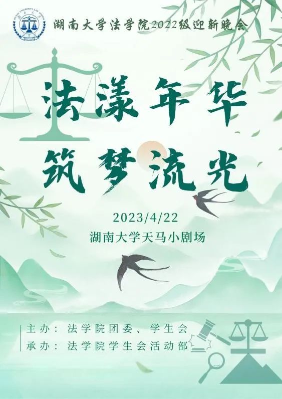 A:主题是“法漾年华,筑梦流光”,打造属于法学生的迎新晚会!